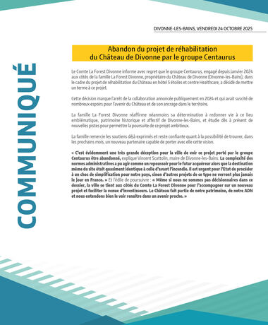 ProjetAbandon du projet de réhabilitation du Château de Divonne par le groupe Centaurus