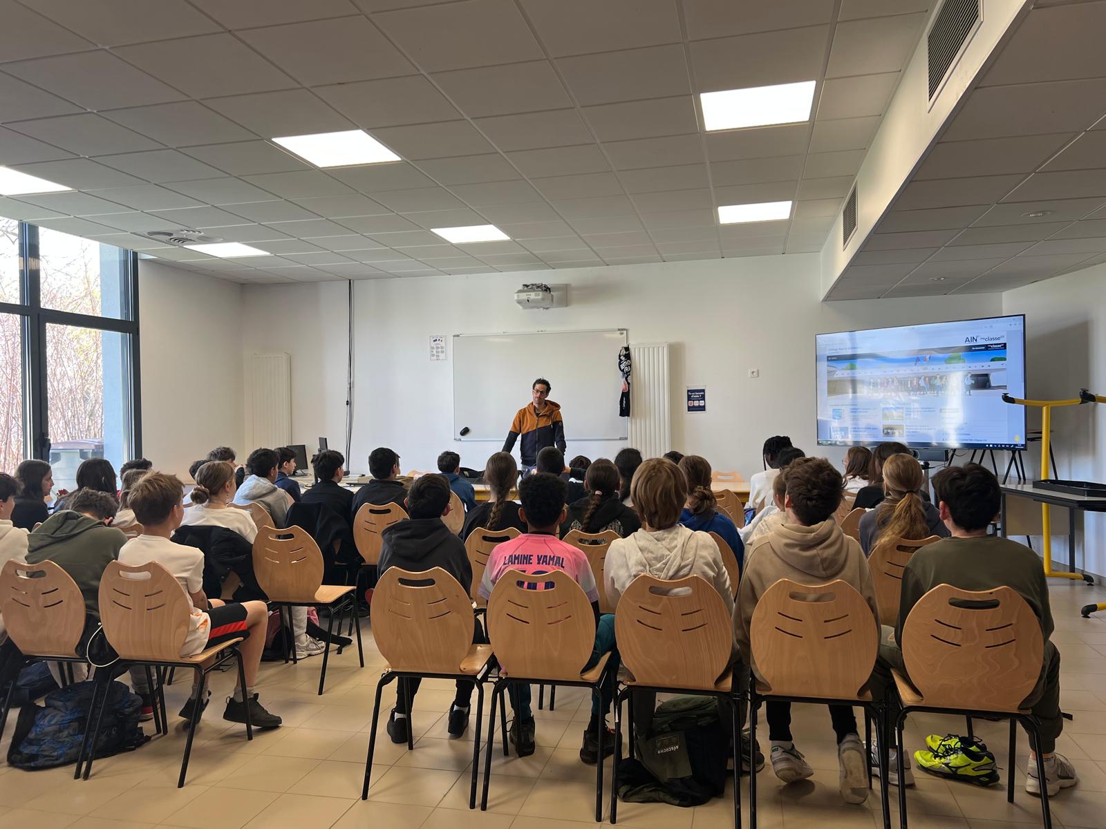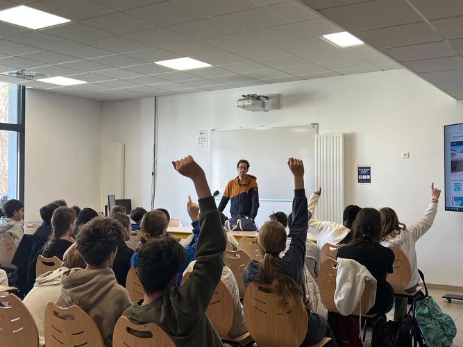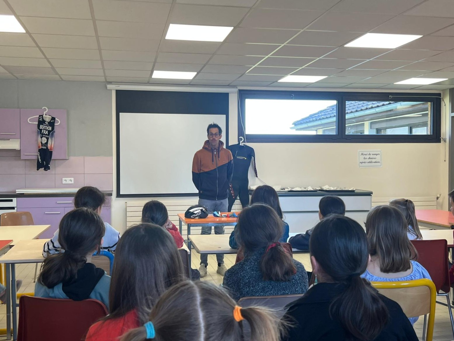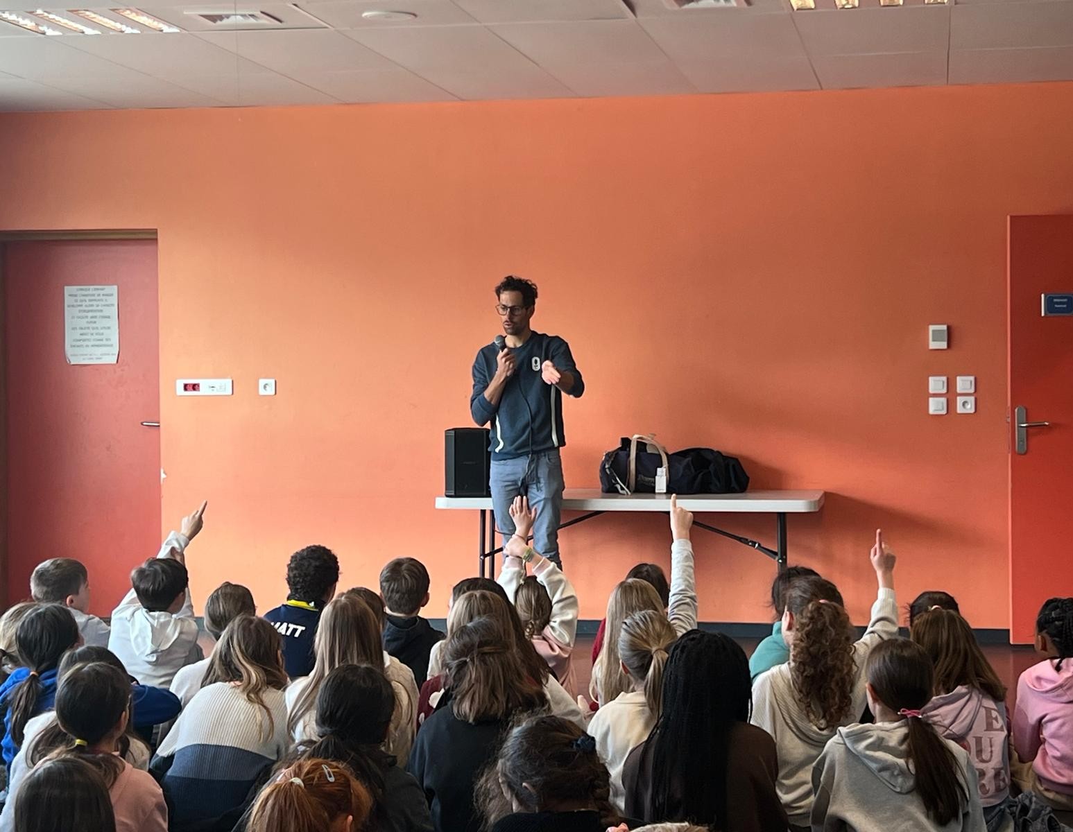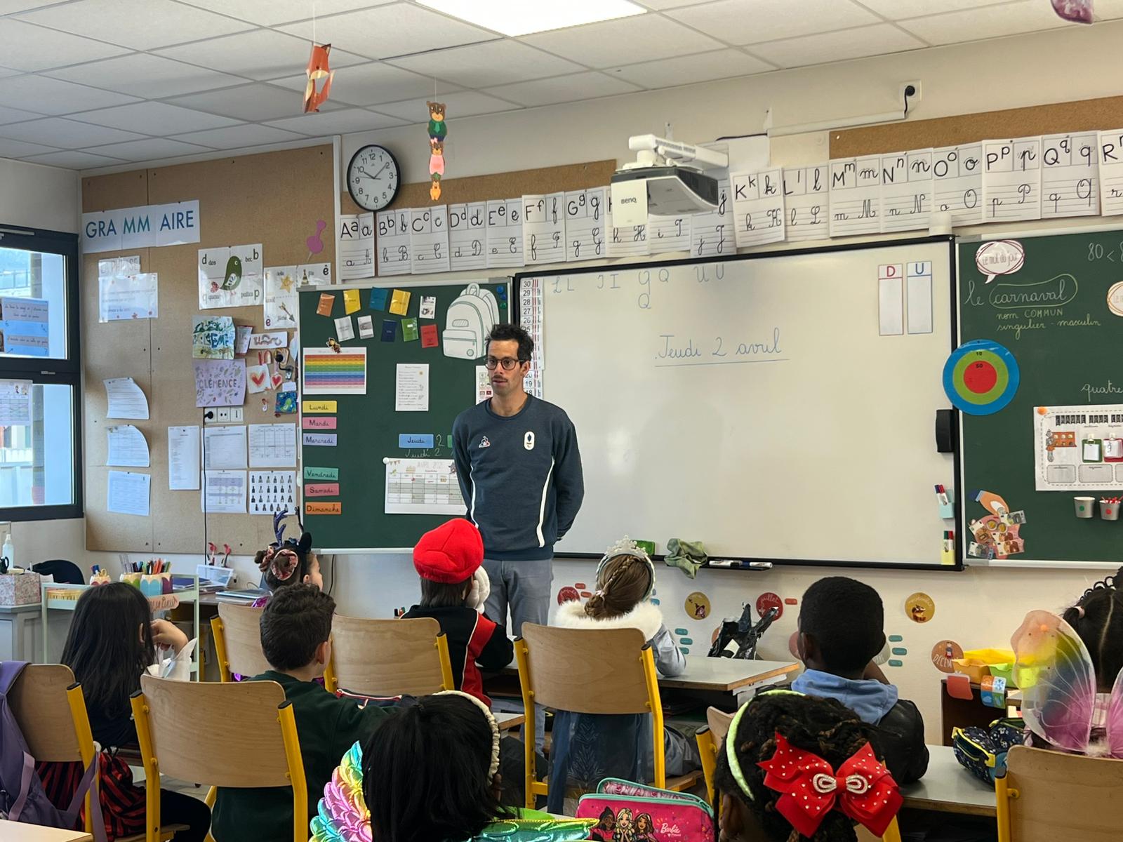 Les élèves ont également pu échanger avec Grégoire Berthon, paratriathlète, autour du handicap et du sport pour tous, en présence de Dominique Morand, adjoint en charge de l’éducation, de l’enfance et de la politique familiale.