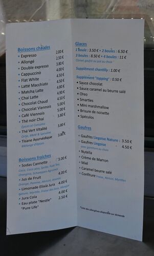 À la carte : boissons rafraîchissantes, glaces et douceurs sucrées. Profitez pleinement du cadre du lac de Divonne-les-Bains.