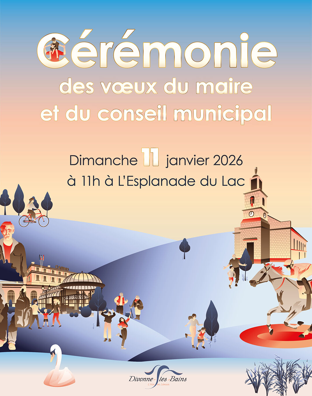 Le maire de Divonne-les-Bains et le conseil municipal vous invitent à partager un moment convivial lors de la traditionnelle Cérémonie des Vœux, le dimanche 11 janvier à 11h à L'Esplanade du Lac.