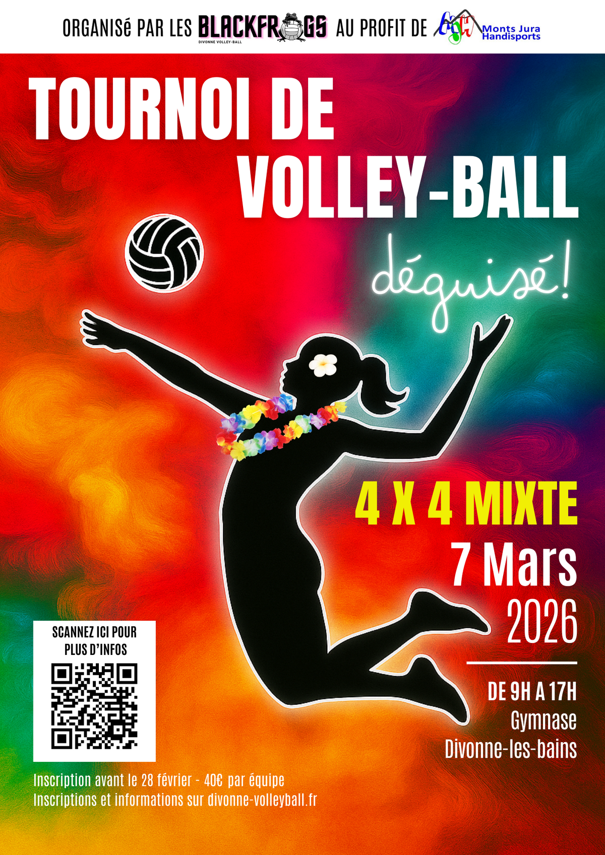 Le club de volley de Divonne-les-Bains « Les Black Frogs » organise un tournoi en 4x4 mixte, le samedi 7 mars de 9h à 17h, au gymnase au profit de l’association Monts Jura Handisports.