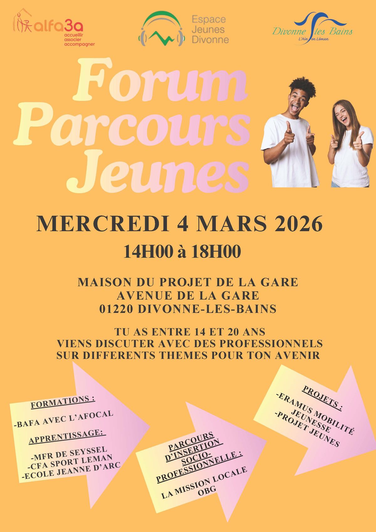 Le mercredi 4 mars, de 14h à 18h, la Maison de la Gare accueille le premier Forum Parcours Jeunes. Cet après-midi s’adresse aux jeunes de 14 à 20 ans qui souhaitent s’informer et réfléchir à leur avenir.