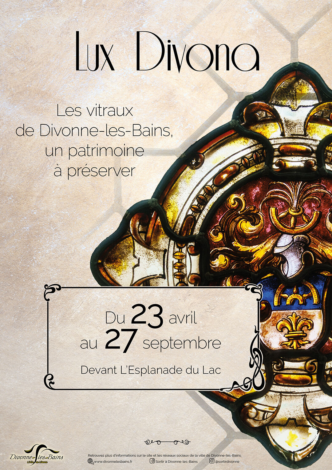 Du 23 avril au 27 septembre 2026, rendez-vous à L’Esplanade du Lac pour découvrir les vitraux divonnais, le service culturel vous propose une exposition photographique sur ce patrimoine discret.